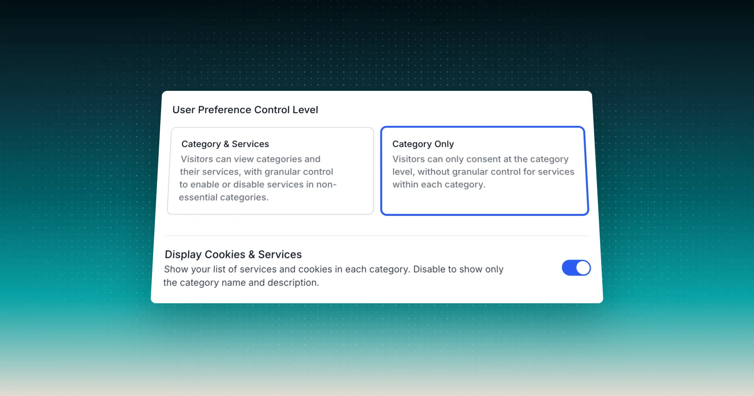 Choose between allowing visitors to control individual services within categories or only at the category level. This update gives you more flexibility to tailor the user experience to match your compliance and engagement goals.